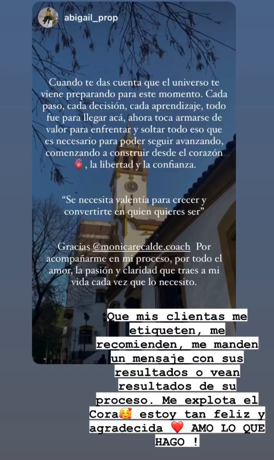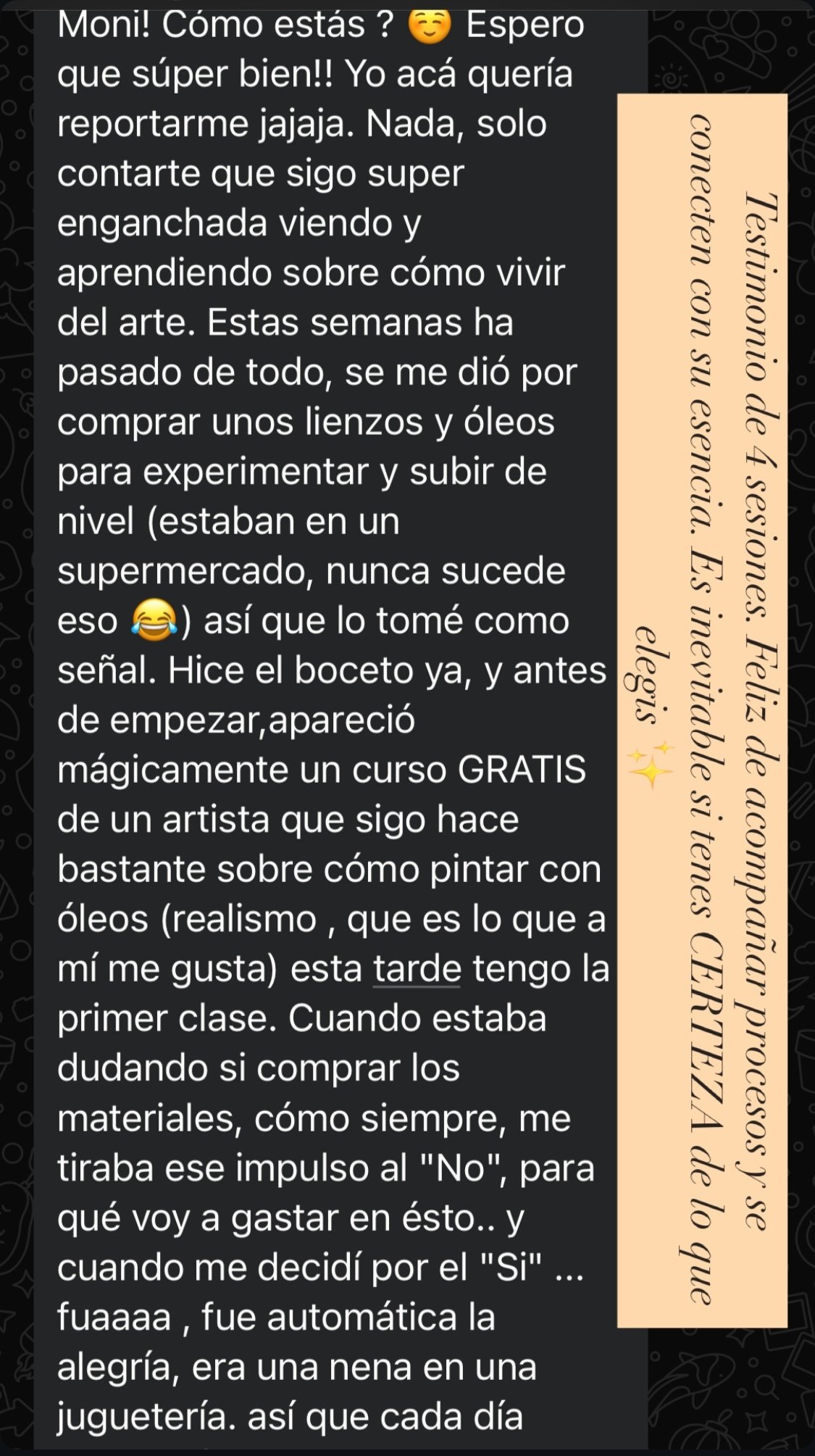 Hoy soy coach ontológica, mentora , facilitadora de liberación personal y creadora de contextos, entre ellos Ubuntu. He guiado a más de 350 personas en procesos de transformación, con una certeza:
